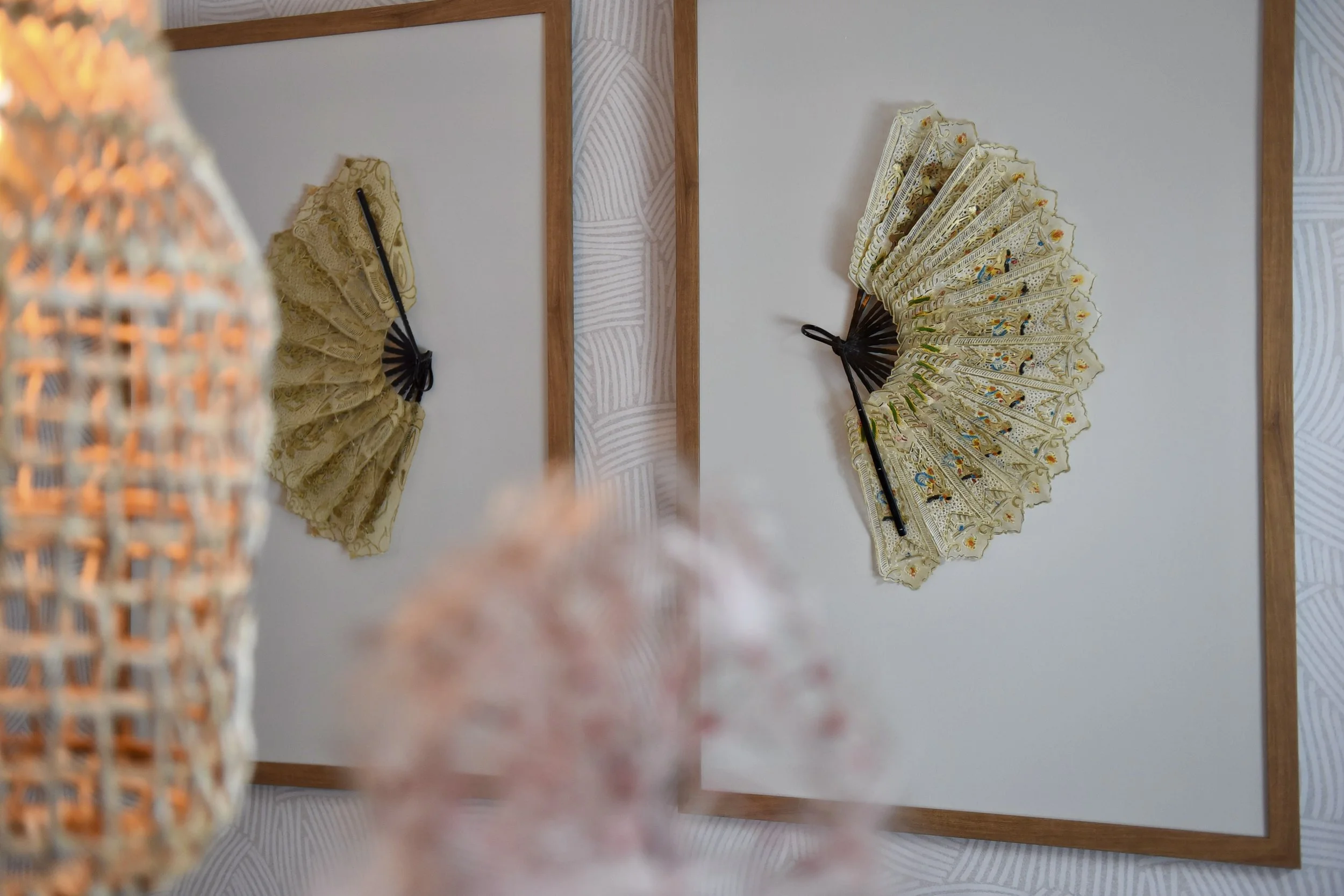 Zie bijvoorbeeld de afbeelding hieronder, hier zijn antieke waaiers uit Indonesië ingelijst voor boven de eethoek. Deze lagen al jaren opgeborgen en hebben nu hun verdiende plekje !